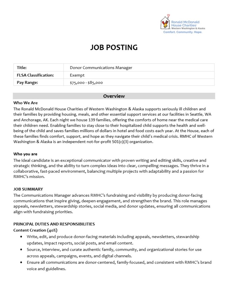 Interested in joining us? Below, you’ll find our current job openings. If there are no openings that align with your qualifications or interests, please consider volunteeringand becoming a valued part of the RMHC family.