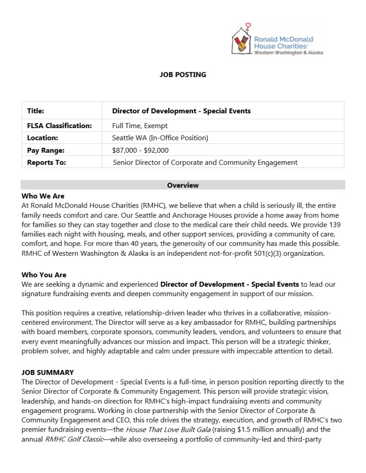 Interested in joining us? Below, you’ll find our current job openings. If there are no openings that align with your qualifications or interests, please consider volunteeringand becoming a valued part of the RMHC family.